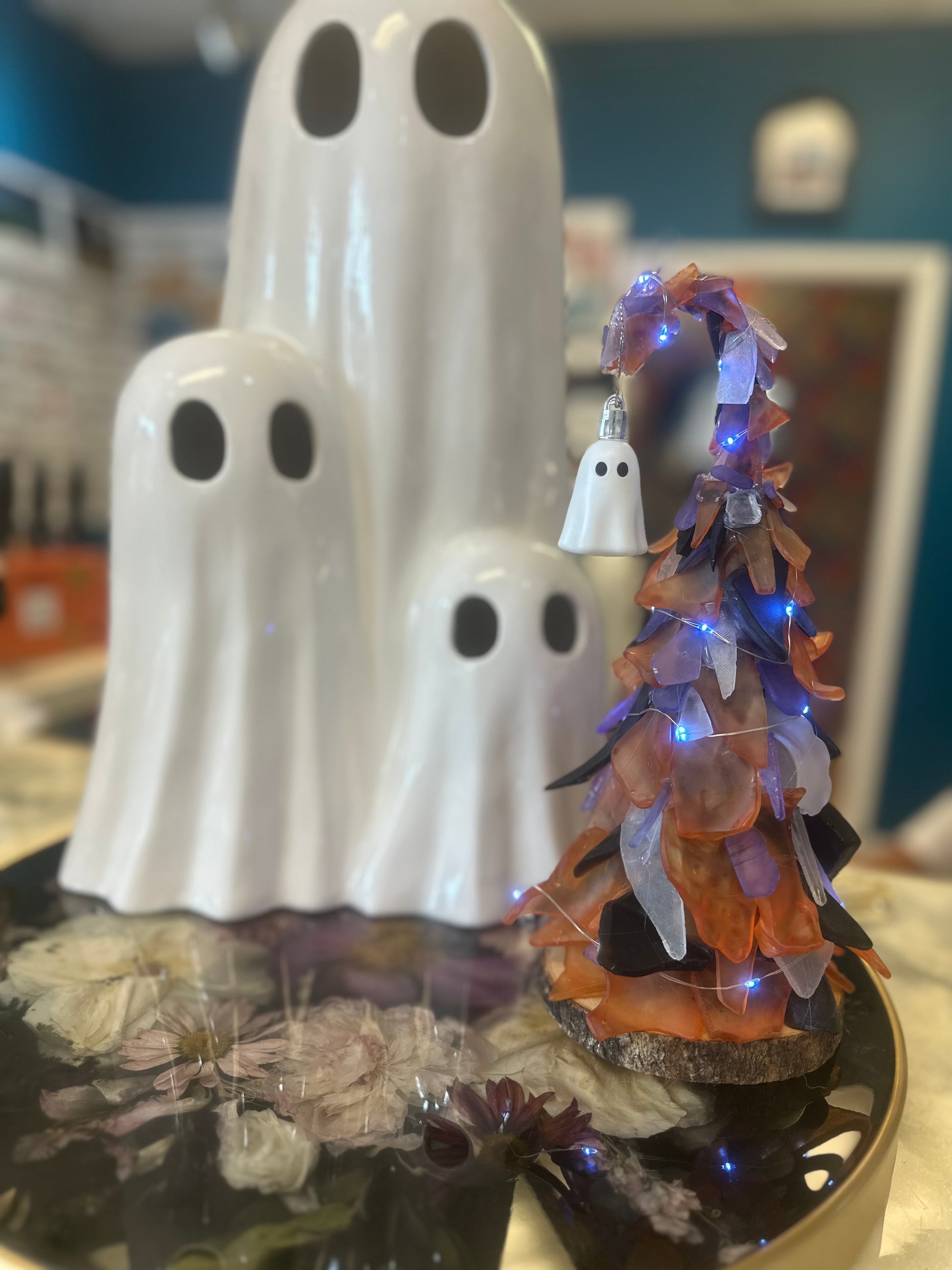 Get ready for a spooky season with us! In this workshop, we’ll be crafting one-of-a-kind Halloween trees using faux beach glass, twinkling lights, and festive accents. Think glowing haunted forests.