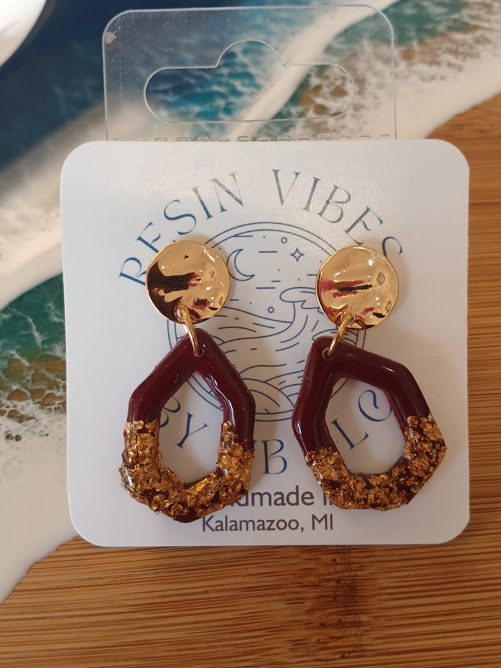 Gold Flake Earrings handmade with polymer clay coated in resin. Lightweight and hypoallergenic wires.