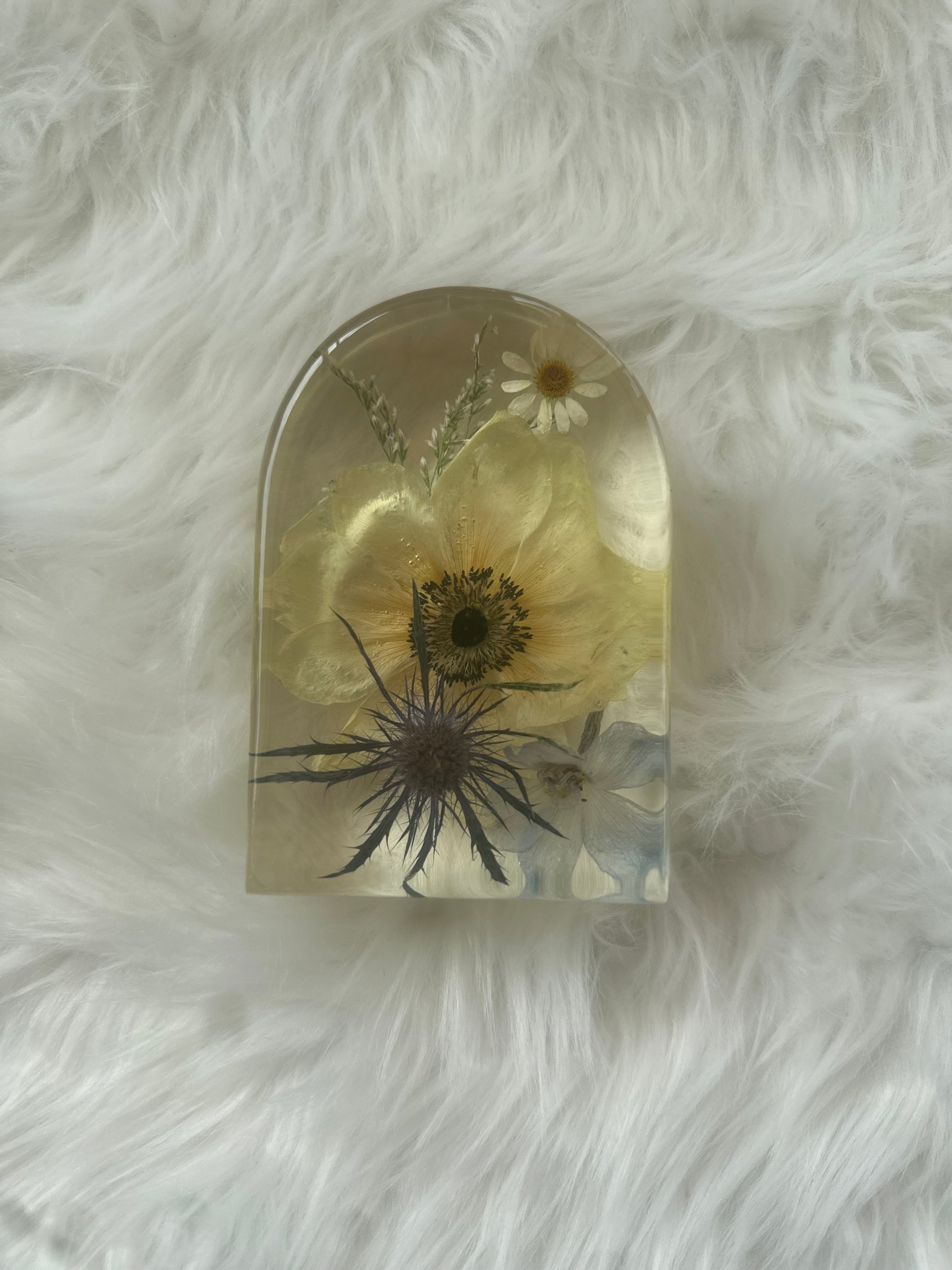 Capture nature’s elegance with this handcrafted floral preservation block, delicately preserved in crystal-clear resin. Each piece features real, carefully selected flowers—frozen in time to commemorate your special moment. Whether it’s a bridal bouquet, a memorial bloom, or a meaningful garden clipping, this resin block transforms sentimental petals into a lasting work of art. Smooth to the touch with a glass-like finish, it makes a timeless display piece for your shelf, desk, or mantel.